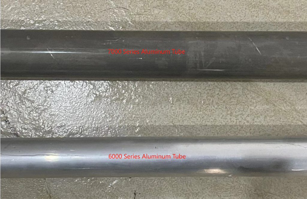 1. From surface: Due to the different processing methods, the surface of 7000 series aluminum tubes is much darker than 6000 series. The surface of 7000 series appears similar to black, while the surface of 6000 series aluminum tubes is silver-white like most aluminum.