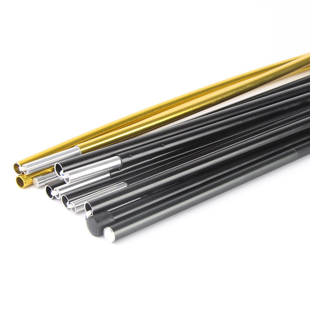 Tent pole material is aluminum 7005 T6. The main purpose of tent pole is to prop up the camping tent, It has good elasticity, high strength not easy to broken. Comparing with 7001 t6 material 7075 has better low temperature resistance. So it’s usually used for cold weather.
